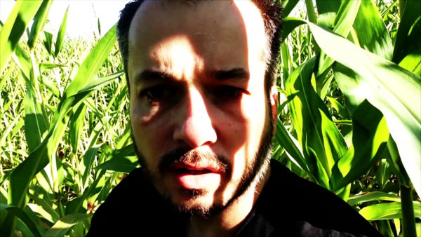 Ein Mann entdeckt auf einer Radtour ein einsames Maisfeld.