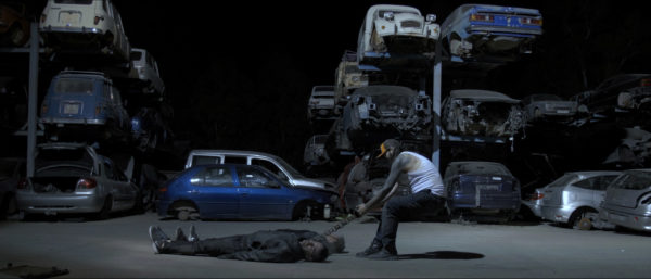 Der Wachmann auf einem alten Schrottplatz bereitet sich auf eine weitere Nachtschicht vor. Zur gleichen Zeit beschließt ein Paar von Dieben am Schrottplatz ihr Glück zu versuchen, aber J ist immer auf der Hut.